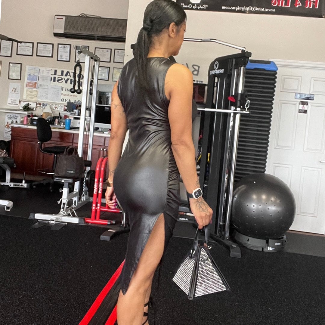 Alpha C Apparel Women High Elasticity Stunning Leather Dress