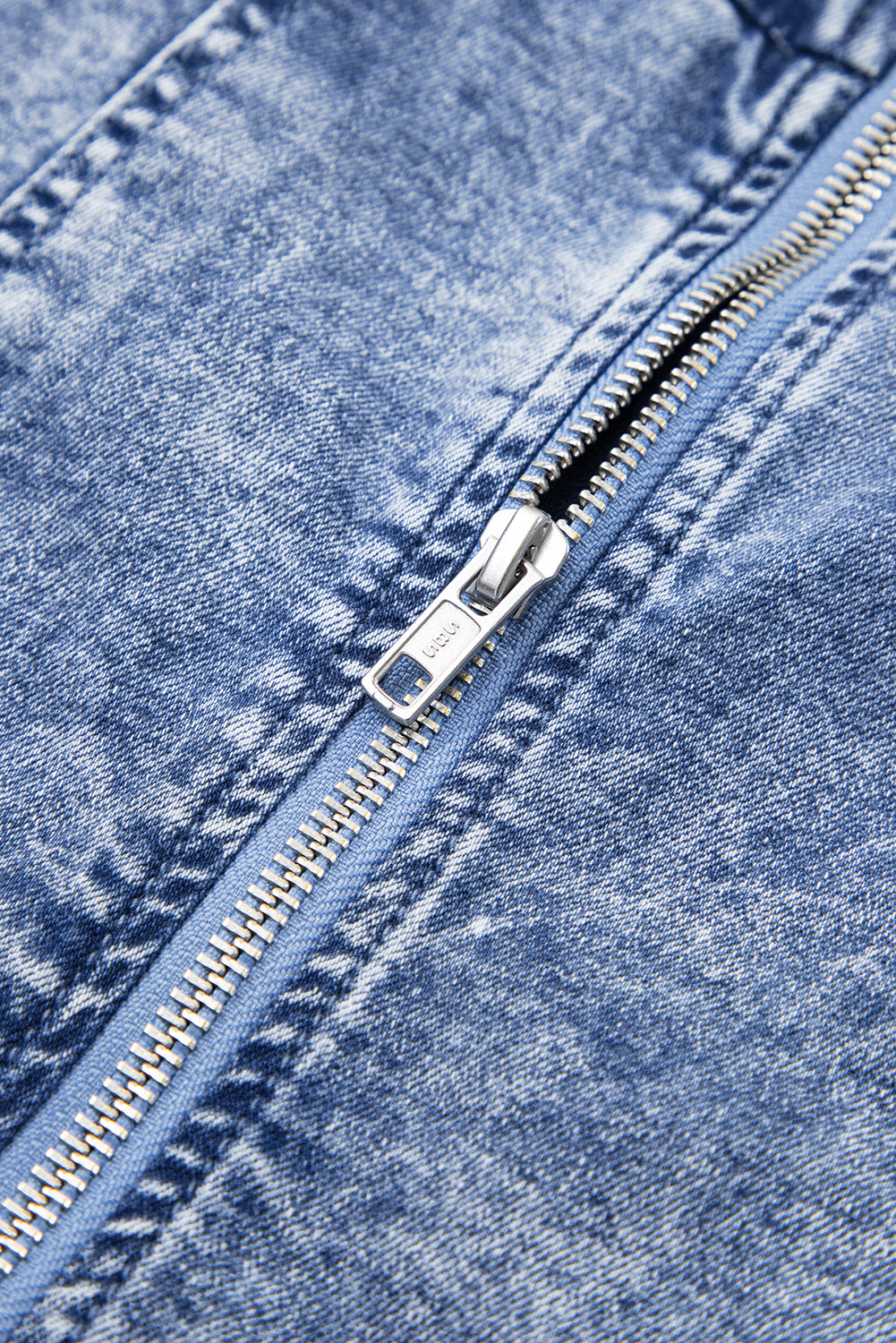 - This bustier denim dress is sure to draw wearers a sexy hourglass figure.