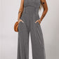 Cinched Waist Sleeveless Wide Leg Jumpsuit