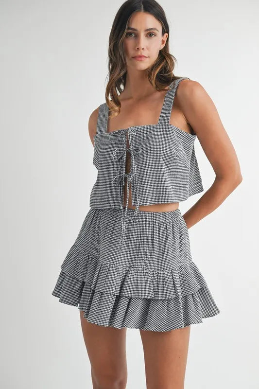 MABLE Gingham Plaid Crop Top and Mini Skirt Set