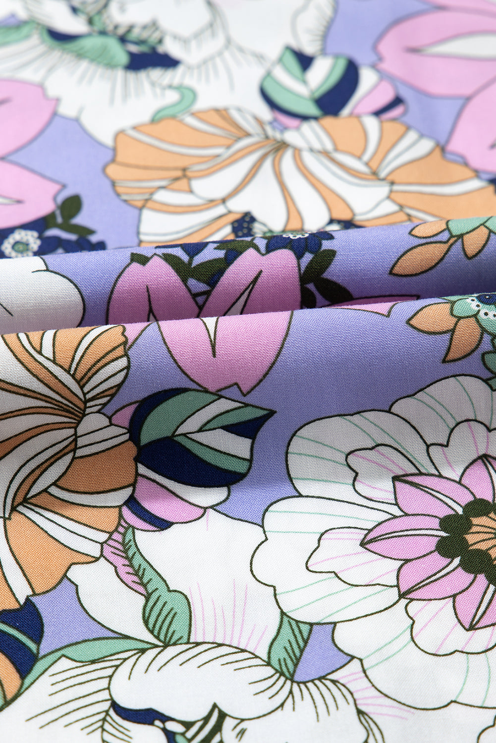 Purple Floral Print Smocked High Waist Square Neck Jumpsuit