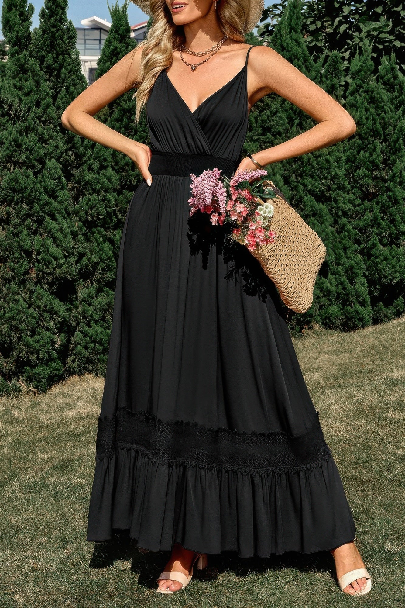 Solid V Neck Sleeveless Paghetti Strap Dress